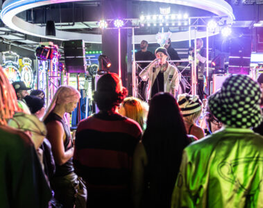 As soon as he finished that last sentence, Goner’s manager, Reid Clow, stepped onto the bus with a quick announcement for the artist: “They’re about to announce you.” I picked up my camera, and we headed back into the venue. Later, I sat down with Reid to gain some insight. Here’s what he had to share. “It was a great night at the Tiki Bar connecting with old friends and new. Awesome to see Goner and Jakob link up too. A couple of weeks before that show, Goner told me we should do something we’ve never done before, and try to book a show somewhere unorthodox. He landed on Dave & Buster’s, where some of our buddies have been hosting raves. We got to sending emails and picking up the phone and made it happen. I’m proud of everything Goner has built and continues to build. It Was All For You out September 5th.” – Reid Clow, Manager, “Swear Jar Presents”